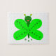 This awesome puzzle features a cartoon of a cheerful butterfly with a dark green body and fluorescent green wings. On the wings is darker green text that says “Happy St Pats”. This friendly little butterfly is designed to appeal to all ages and is ready and waiting to wish someone a happy St Patrick’s Day.