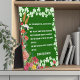 Flower collage decor 'Home Accent Irish Blessing Plaque' for Saint Patrick's Day. The illustration has a red, orange, pink floral collage amidst greenery on a shamrock green background. The TEXT is easily customizable with your choice of Irish/Any Blessing. The words and calligraphy can be changed.