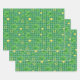 A set of three coordinating green plaid and shamrock wrapping papers with just a touch of gold.