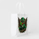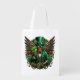 I own a lot of reusable grocery bags, but this one holds its box shape and simply stands up on its own even if there is nothing in it. Its stiffer than your regular reusable bag too, and the material is water resistant. I poured water on the exterior and it didn't penetrate inside to the other side. I'm buying a couple more. Wish I knew how durable these bags were or I would have purchased a few more with my initial order. I also like how it folds and buttons up when not in use, making it easy to put into a handbag or luggage. I haven't used this bag yet, as I purchased it for travel use, like when you're at the airport and need to small sturdy bag to place any airport purchases in, like food, souvenirs etc. I can tell you when you first see this bag, it looks very cheap, but after closer inspection of the material and the seams its a very sturdy reusable bag. I tested it out by putting some really heavy objects inside and I could not observe any stress to the bag at all. Another thing I like about it, is the fact the medium size that this is makes it easy to just carry it in your hand without the bottom of the bag scraping the ground, like most other bags do when you're short. That alone, deserves 5 stars. I just wish there were more colors to choose from! The PDX Airport Carpet printing looks just like the photo, and using this bag during travel might be a conversation piece when/if a native from Oregon happens to see it.