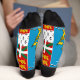 This fun Halloween socks are bright and colorful. The small print is crisp and shows the fun details. The softness of the socks feels nice on my feet and ankles. .