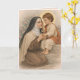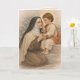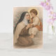 This tender folded greeting features a vintage-style watercolor image of St. Thérèse of Lisieux with the Child Jesus, captured in a moment of deep love and childlike trust. Surrounded by soft roses, the Infant gently touches her face, reflecting her “Little Way” of simplicity, surrender, and quiet confidence in God.