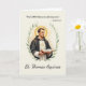 This peaceful image of Saint Thomas Aquinas features the Dominican saint holding an open Bible, dressed in his traditional habit, with a golden sunburst over his heart. The scripture quote from Numbers 6:24 offers a blessing of divine peace and protection, inspired by his enduring legacy of faith and wisdom. Although his feast day is celebrated on January 28, this card is appropriate for all occasions—offering encouragement, spiritual support, or simply a reminder of God’s peace. A soft watercolor wreath surrounds the portrait, giving it a timeless and gentle touch.