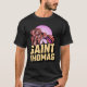 My 11 yo wore adult XL (5’7” 165#). The 8yo is small framed. She wore adult small and tied it in the back. Grandma wore adult large with long sleeve shirt underneath. Tall girl adult medium. Dark haired male adult large. Good quality dark Heather gray, Gildan brand shirt. -it was next up from basic choice and cost about $20 per shirt. Not too thick or thin. Washed and dried well, no major shrinkage. Not see-through. Can wear a bra under it fine. Screen print is just as shown and well done, front and back.