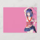 A Japanese-style image of cherry blossoms and female samurai illustration postcard. Cute pink atmosphere and anime touch character cards.