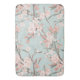 Pretty blush pink cherry blossom branches on a pastel aqua background.