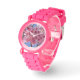I only have one complaint. I ordered the watch with clear case and strap, and what was sent was white case and strap. I'm going to keep it because 1) it looks very nice in white, and 2) it would take too long to get a replacement made and sent in time for my occasion. Aside from the mix up with the color, the watch does look very good in white. The purple dial is actually sparkly which did not show in the online images. That was a nice surprise. If you like Swatch watches this is very similar to those. It's 33.6mm in diameter, 10.5mm thick, and 40.6mm lug to lug. Stainless steel case back says 3ATM/30m WR, so no swimming or showering or submerging this one. If you like Woodstock, this is a great choice.