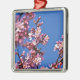 Sakura Cherry Blossoms Touching Blue Metal Ornament