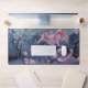 An XXL (31.5" x 15.5" / 800mm x 394mm) mousepad / desk mat / playmat with a tiny pink dragon in a Japanese cherry blossom tree. Illustrated by Roxane Lapa