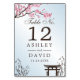 Sakura Japanese Cherry Blossom Asian Table Number. This design features beautiful pink sakura Japanese cherry blossom branches against a sky blue background. Accented with bamboo. Personalize this custom design with your own details.