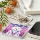 Introducing our delightful Keychain featuring whimsical fantasy art: a jazzy kitty adorned in a stylish cardigan, gallivanting among blooming cherry trees in full springtime splendor.