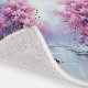 The intricate branches of the cherry blossom tree stretch across the rug, their slender limbs adorned with clusters of blooms that seem to sway with a gentle rustle. Against the backdrop of the serene lake, the cherry blossoms exude an ethereal glow, infusing the space with a sense of enchantment and tranquility.