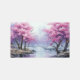 The focal point of the rug is the magnificent cherry blossom tree gracefully arching over the tranquil waters. Each delicate blossom is meticulously painted in soft hues of pink and white, capturing the fleeting beauty of the cherry blossom season. The blossoms dance gently in the breeze, their petals seemingly caught mid-fall, as if time has paused to immortalize their ephemeral beauty.