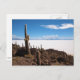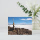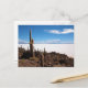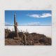 Postcard with giant cactus on Isla Incahuasi inside the Salar de uyuni salt flats near Uyuni in Bolivia.