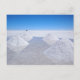 Postcard of drying piles of salt with reflection in the water waiting for the harvest on the Salar the Uyuni salt flats in southern Bolivia.