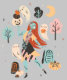 This charming illustration reimagines Sally from "The Nightmare Before Christmas" in a festive Halloween setting. Sally, with her vibrant red hair and patchwork dress, is joyfully participating in the Halloween festivities. She is surrounded by friendly ghosts and whimsical trees under a crescent moon, capturing a scene of magical enchantment. The atmosphere is lively and playful, filled with stars, a jack-o'-lantern, and a hint of autumn magic.