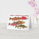 Humorous Card featuring 5 species of North American Salmon- all shown in spawning regalia. Sockeye,Chinook,Chum,Coho & Humpback. From original watercolor studies by nature artist, Thom Glace.