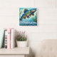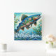Salmon Jumping Mosaic Floral Blue Personalized Square Wall Clock