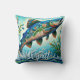 Salmon Jumping Mosaic Floral Blue Personalized Throw Pillow