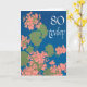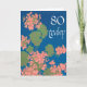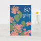 Salmon Pink Geraniums on Deep Blue, 80th Birthday Card