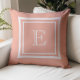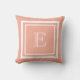 Salmon Pink White Square Framed Monogram Throw Pillow