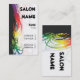 Rainbow and black wisps of hair accompany your business card information. If you would like another color scheme, please contact me.