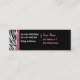 Salon business card with stylish zebra stripes design and modern text layout you can customize now. Use these business cards to market and promote yourself in an inexpensive way! Best business cards for themes related to a hair salon, nail salon, hair dresser, or beauty parlor. You could also use this as a fashion business card or trendy furniture store business card in a handy mini business card format.