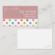 Salon business card with cool polka dot print and text layout you can customize. Use this business card to market and promote yourself in an inexpensive way! Great design and free printing on back of card make this a good choice for a hair salon, nail salon, hair dresser, or beauty parlor. You could also use this as a fashion business card or trendy furniture store business card.