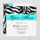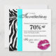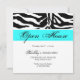 Salon open house party invitation / announcement with zebra animal print also great as as a spa advertisement, especially for a makeup professional or for an open house.