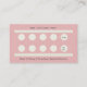 Salon Loyalty Business Card Punch Card. Fully customizable business card with punch/stamp placeholders to reward your customers for their loyalty. Enter in your own promotion and company information. Perfect for a salon, barber, stylist, beauty salon, beautician, or mani and pedicure salon.