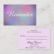 * Appointment Reminder Metallic Iridescent Faux Foil - : Very Awesome artistic and abstract modern business card for someone who is seeking a beautiful girly chic feminine artsy design for their branding. The back text is on a LAVENDER background. The colors are very organic in shape.
