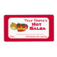 The labels say, "Your Name's Hot Salsa." Add your name in the template to personalize. You can change the font style or color or the background color to personalise, or any of the words.