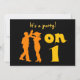 This custom dancing design party invitation is for salsa dancers who dance the L.A. or Los Angeles style, on beat one. It has a silhouette of a couple doing a fast spin and says "on 1" in bright colors. In other words, salsa on one.