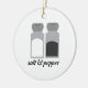Lightweight, smooth, pure white ornament with nice sheen. Perfect size to be seen from across the room ... and to attract closer inspection! Price was great for ordering enough for the whole family! Clear, bold black design just as requested. Matches the order exactly. Just so nice!