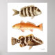 Original watercolors of 3 species of saltwater sport fish- sheepshead,redfish,Nassau grouper
