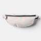 Bring a taste of the beach with you wherever you go with this patterned fanny pack. It features illustrations of saltwater taffy candy in pretty pastel colors against a pale pink background.