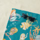 Two cute mermaid images are repeated in the pattern on this beach towel, along with an octopus, fish, a scuba diving dog, and more! Light blue text says "Salty & Sweet". The colorful images are placed on an ocean blue background. A matching border at the bottom holds your name in white script. Fun!