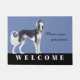 Cute doormat featuring an illustration of a Saluki. Customizable background color and texts. Perfect gift for the dog lover or Saluki owner.