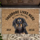 Saluki Personalized Dog lover welcome doormat. This welcome mat can be personalized with your dog’s name, the slogan can also be changed or you could use a picture of your own dog (make sure it's transparent). Text reads: Theodore lives here…. All treats welcome
