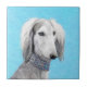 Saluki (Silver) Painting - Cute Original Dog Art Ceramic Tile