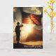 A silhouette of a soldier saluting an American flag with a dramatic sunset sky.