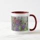 pic of gorgeous purple salvia and burgandy mums on a burgandy ringer mug. STUNNING. 2 sided pics for a view from any angle