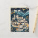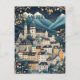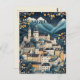 This is a beautiful postcard for travelers to / from Salzburg, Austria. It provides a whimsical design representing Salzburg's magical castle, town-center, and surrounding mountains.