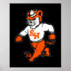This dynamic design proudly showcases the full-body mascot of Sam Houston State University. The stylized Bearkat is depicted in a powerful, running stance with a determined expression, embodying the team's strength and competitive spirit. It is outfitted in a sweater adorned with the iconic "SH" logo and a paw print, a clear symbol of university pride. This impactful and recognizable design is a perfect way to display allegiance to Sam Houston State University and its athletic teams.