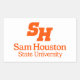 This dynamic design proudly showcases the official combination logo of Sam Houston State University. It features the bold, slanted "SH" wordmark at the top, presented in a powerful typeface. Below this emblem, the full name "Sam Houston State University" is elegantly displayed in a complementary font, creating a clear and comprehensive representation of the institution. This impactful and recognizable design embodies the spirit, pride, and identity of Sam Houston State University, serving as a powerful identifier for students, alumni, and supporters.