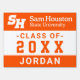 This design commemorates graduation achievements at Sam Houston State University. It embodies the spirit of accomplishment and the enduring legacy of academic excellence. The design is perfect for celebrating the hard work and dedication of graduates, serving as a lasting symbol of their journey at SHSU. It is ideal for graduates, family, and friends looking to honor this special achievement and show their pride in the institution.