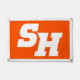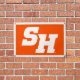 This dynamic design proudly showcases the official "SH" wordmark logo of Sam Houston State University. The bold letters are presented in a powerful, slanted sans-serif typeface, conveying a sense of energy and modernity. This impactful and recognizable design embodies the spirit, pride, and identity of Sam Houston State University, serving as a clear identifier for students, alumni, and supporters.