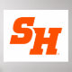 This dynamic design proudly showcases the official "SH" wordmark logo of Sam Houston State University. The bold letters are presented in a powerful, slanted sans-serif typeface, conveying a sense of energy and modernity. This impactful and recognizable design embodies the spirit, pride, and identity of Sam Houston State University, serving as a clear identifier for students, alumni, and supporters.