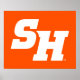 This dynamic design proudly showcases the official "SH" wordmark logo of Sam Houston State University. The bold letters are presented in a powerful, slanted sans-serif typeface, conveying a sense of energy and modernity. This impactful and recognizable design embodies the spirit, pride, and identity of Sam Houston State University, serving as a clear identifier for students, alumni, and supporters.