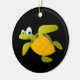 A fun animated looking cartoon sea turtle named Sam. Very colorful in bright yellow and green with a sweet face and big round eyes.